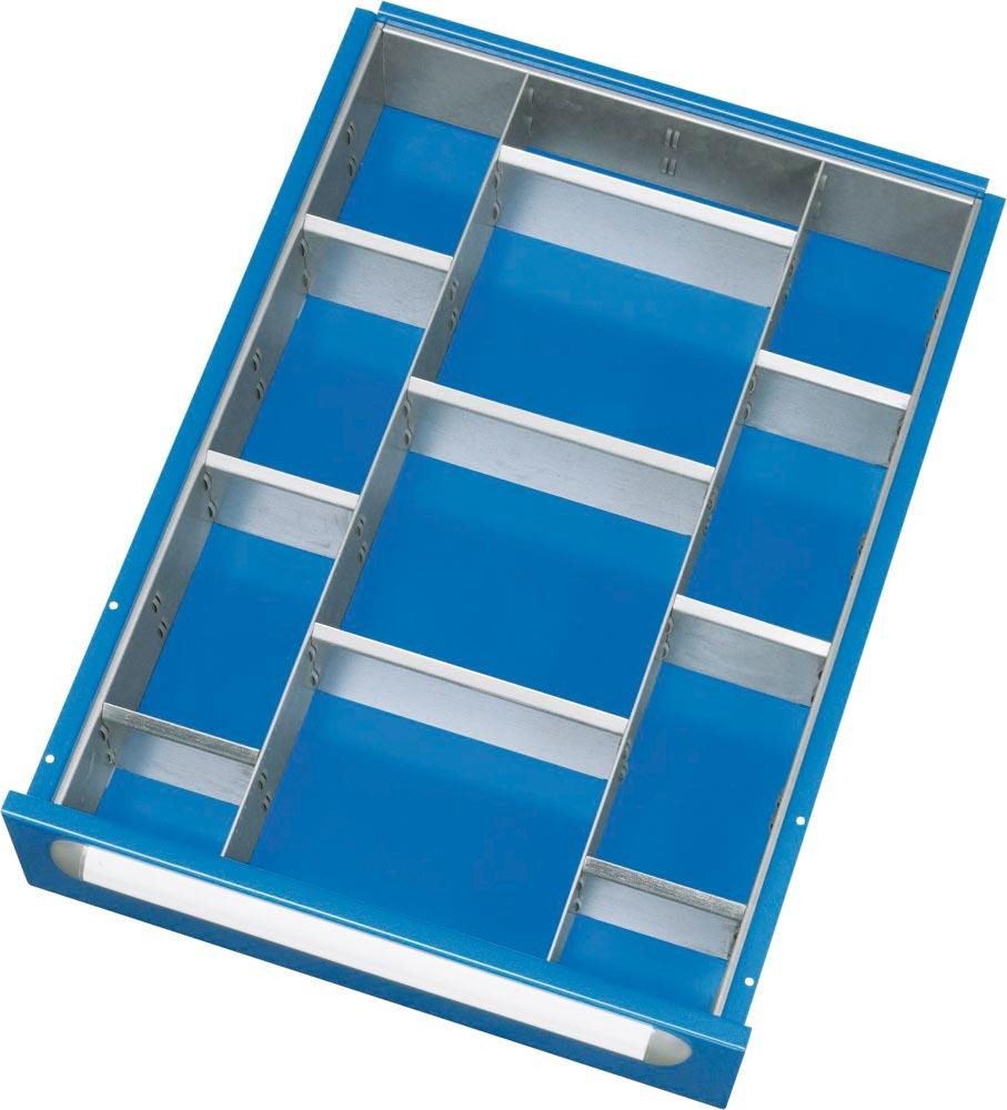 Einteilungsset für Schublade, Fronthöhe 60 - 90 mm, B x T 390 x 560 mm, 2 Trenn- und 9 Steckwände
