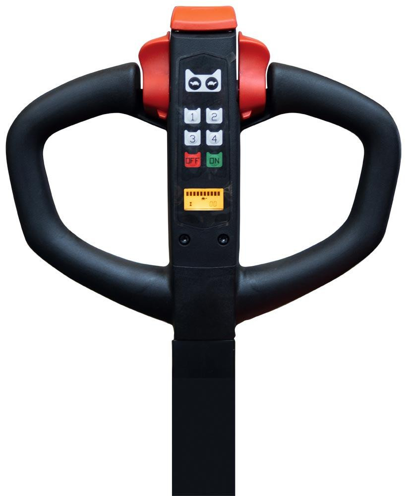 · Einsteigermodell zum elektischen heben und verfahren von Lasten bis zu 1500 kg · Eingabe des Gerätecodes genügt zum Starten · Einsetzbar bei begrenzten Höhenverhältnissen in kleineren Lager- und Produktionsräumen, in LKW´s oder Aufzügen · Zwei wartungsfreie 12 V/100 Ah AGM-Batterien und integriertes Ladegerät 24V/15A · 750 W starker Antriebsmotor sorgt für einen flotten Transport und Warenumschlag · Die Gesamtleistung bei voller Auslastung beträgt 4 Stunden · Die ergonomisch geformte Deichsel fungiert als Multifunktionsgriff und verfügt über alle nötigen Bedienelemente · Not-Umkehr- Taster, An-Aus-Taster und Schildkrötentaste, sowie Fahrschalter, Ladestandanzeige und die Modus-Übersicht
