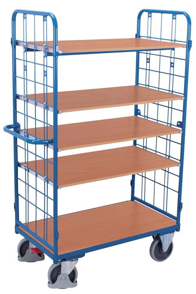 Etagenwagen, 2 Gitterwände, 5 Ladeflächen LxB 1200x800 mm, Außenmaße LxBxH 1385x820x1820 mm, Traglast 500 kg