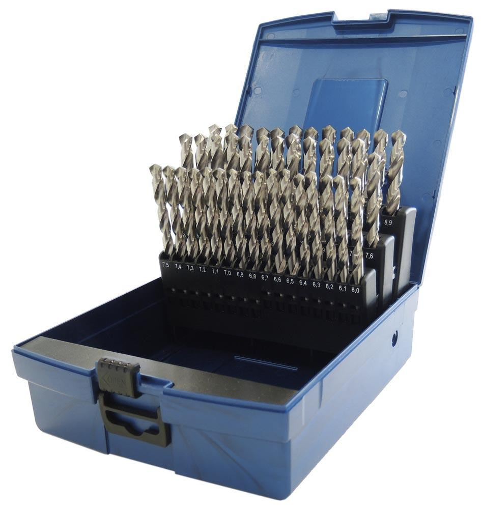 Ausführung: Mit Zylinderschaft, kurz, nach DIN 338 Typ N, rechtsschneidend ∙ Profilgeschliffene, blanke Ausführung ∙ Hohe Rundlaufgenauigkeit, hohe Bruchsicherheit und gute Spanabfuhr ∙ Spitzenwinkel 118°, mit Kreuzanschliff Form C ab Ø 2,0 mm - Ø-Toleranz h8 ∙ Übrige Konstruktionsmerkmale nach DIN 1414 ∙ Sätze in robuster Klappkassette aus ABS-Kunststoff