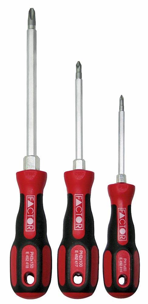 Factor Kreuzschlitz-PZ-Schraubendreher-Satz mit 2-K-Griff 3tlg.