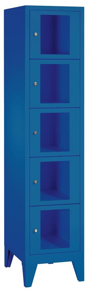 Fächerschränke mit Füßen und Sichtfenstertüren, 1x5 Fächer, Schloss, BxTxH 420x500x1850 mm, Abt. B 400 mm, RAL 5010