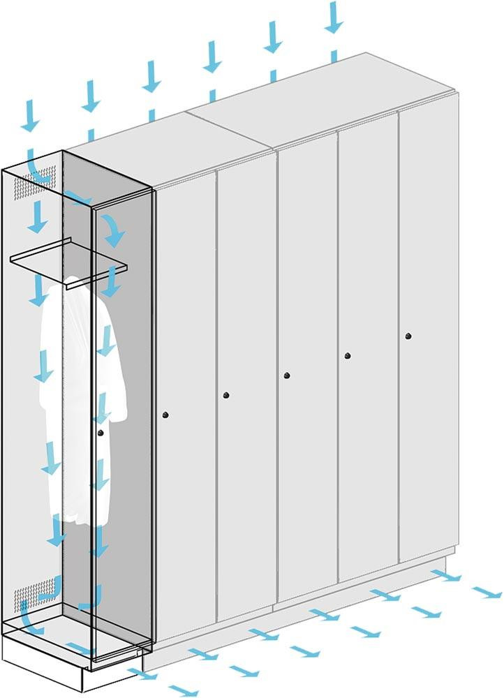 Fächerschrank, 1x5 Fächer, Abt. B 300 mm, Selbstbelüftungskonzept, BxTxH 300x525x1980 mm, RAL 7035/5010