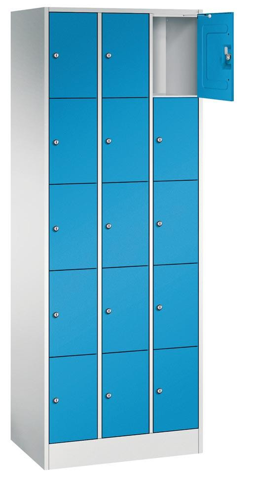 Fächerschrank, 3x5 Fächer, Fachbreite innen 190 mm, BxTxH 680x480x1950 mm, RAL 7035/5012