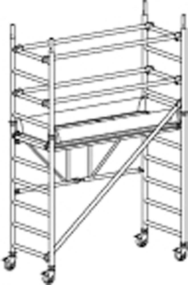 ∙ Kompakt und Platzsparend ∙ Äußerst stabil ∙ Mit großer Arbeitsbühne L x B 1900 x 650 mm ∙ Aufbau optional mit Höhenversatz z. B. in Treppenstellung ab Größe ∙ Zulässige Belastung 200 kg/m2 ∙ 4 Lenkrollen Ø 125 mm (ab Größe Ø 150 mm) ∙ Nach EN 1004