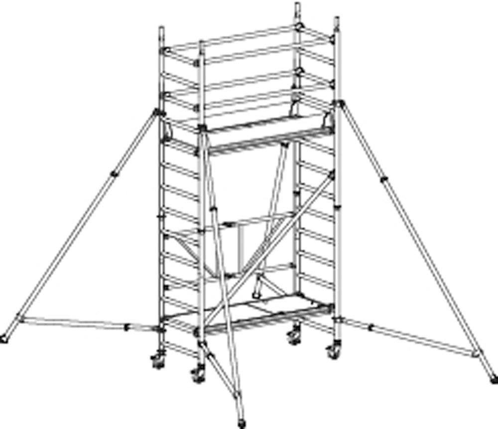 Fahrgerüst, klappbar, Arbeitsfläche 1900x650 mm, Standhöhe 2570 mm, Gerüsthöhe 3800 mm