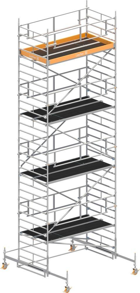 Fahrgerüst Breit P2 mit Sicherheits-Doppelgeländer, Arbeitshöhe 9,38m, Gerüsthöhe 8,61m, Standhöhe 7,38m, Gewicht ohne Balast: 521,9 kg