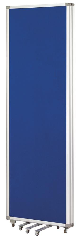 Falt-Stellwand, fahrbar, BxTxH 1810/600x370x1800 mm, Alurahmen, Filzoberläche blau, 3-tlg, klappbar