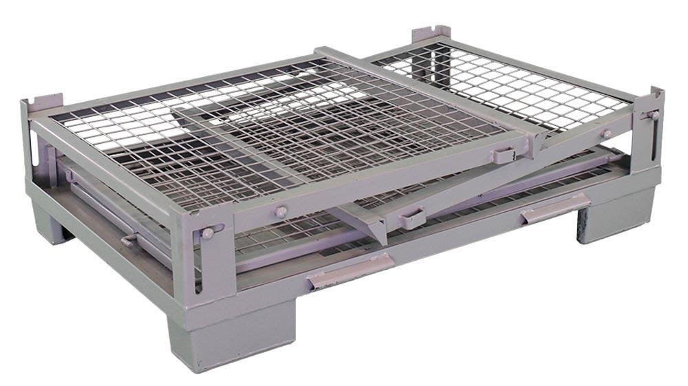 Faltbare Gitterboxpalette, 1 Längswand halb abklappbar, RAL 7030 steingrau, LxBxH 1240x835x970 mm