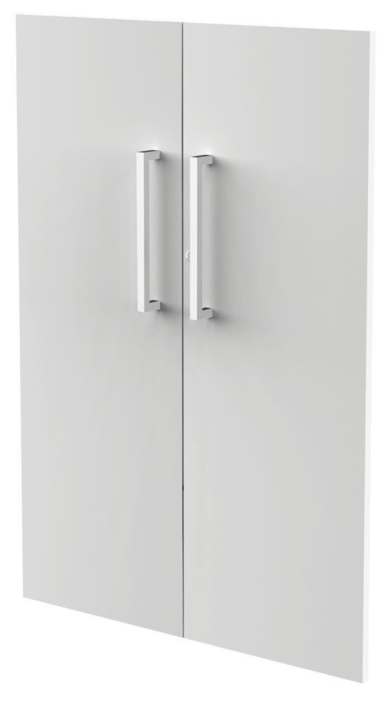 Flügeltüren-Vorbausatz, BxH 760x1060 mm, 3 OH, Edelstahlgriffe, Schloss, weiß
