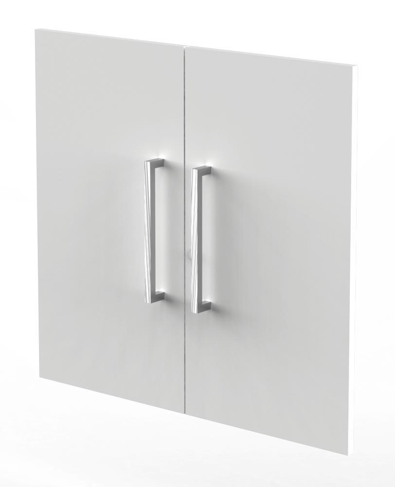 Flügeltüren-Vorbausatz, BxH 760x700 mm, 2 OH, Edelstahlgriffe, Schloss, weiß