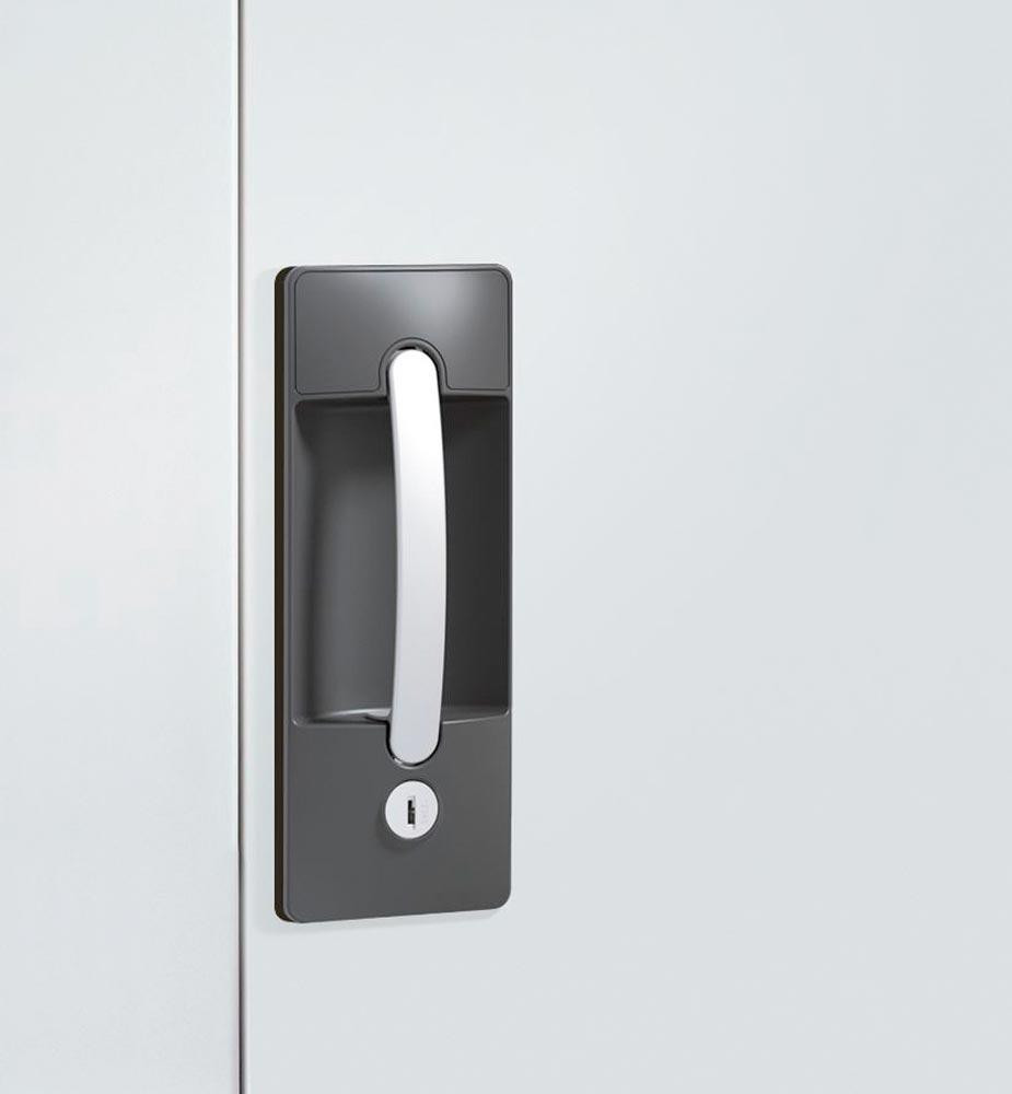 · Flügeltüren mit 3-Riegel-Griffschloss inkl. 2 Schlüssel und patentiertem Mechanismus: