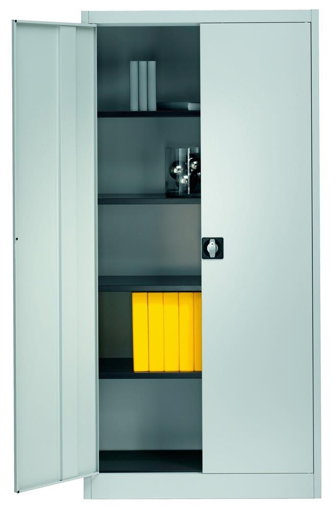Flügeltürenschrank, BxTxH 950x420x1950 mm, 4 lack. Böden, 65 kg Traglast/Boden, RAL 7035 lichtgrau