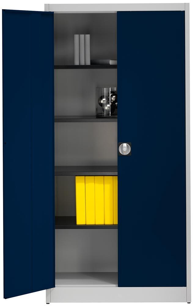 Flügeltürenschrank, BxTxH 950x420x1950 mm, 4 lack. Böden, 65 kg Traglast/Boden, lichtgrau/saphirblau