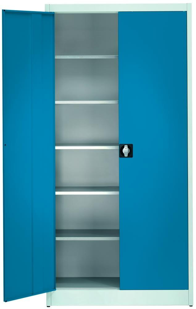 Flügeltürenschrank, Vollblechtüren, 5 verzinkte Böden, BxTxH 950x500x2200 mm, RAL 7035/5010