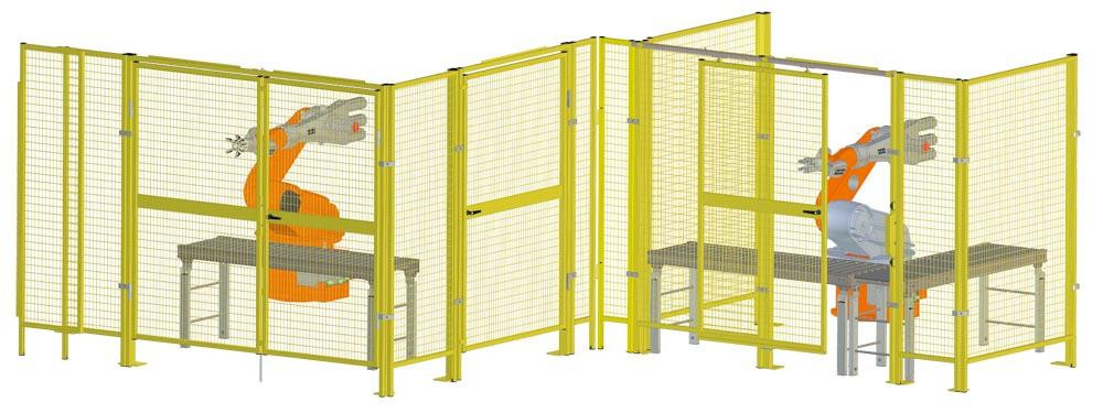 ∙ Maximale Sicherheit und normgerechter Unfallschutz an automatischen Anlagen und Robotern durch solide Schweißkonstruktion ∙ Variabel und vielseitig einsetzbar ∙ Vorschriftsmäßige Maschenweite von 50 x 25 mm ∙ Ausführung nach EN ISO 13857, Maschinenrichtlinie 2006/42/EG