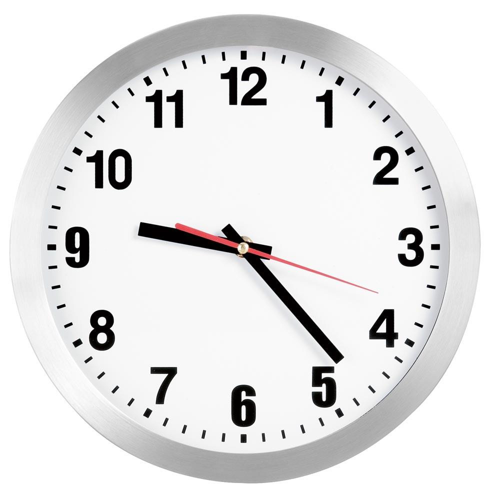 Funk-Wanduhr, Durchm. 300 mm, Alugehäuse silber, Ziffernblatt weiß, arabische Ziffern, inkl. Batterie