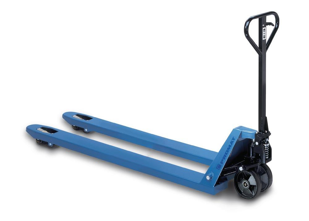Gabelhubwagen Gabel-L. 2000 mm Trgf. 2000 kg Stahl taubenblau, RAL 5014 PUR/PUR