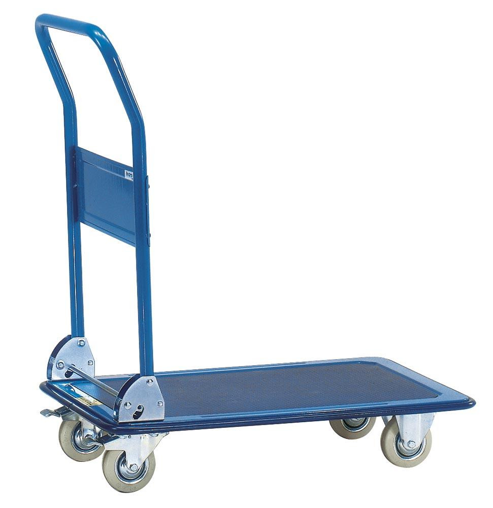 Ganzstahl-Plattformwagen, Ladefläche LxB 740x480 mm, mit klappbarem Rohrschiebebügel, Traglast 150 kg