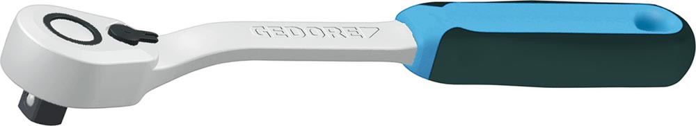 Gedore Hebelumschaltknarre, Vierkantantrieb 1/2 Zoll, Zähnezahl 60, Länge 270 mm, Zweikomponentengriff, gekröpft, CV-Stahl