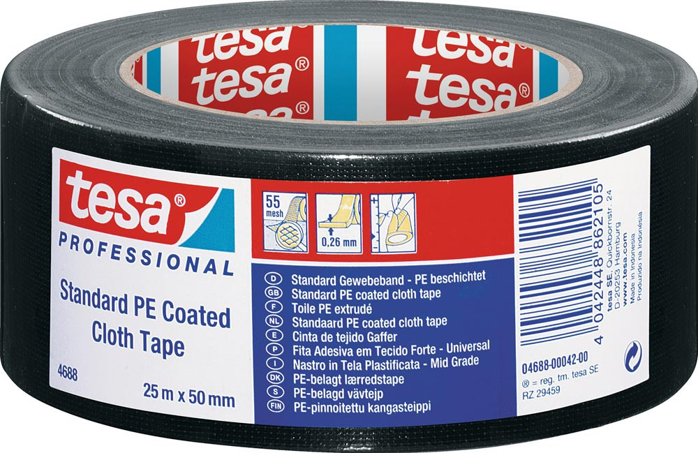 Gewebeklebeband, tesaband 4688, schwarz, Länge 50 m, Breite 50 mm, Rolle