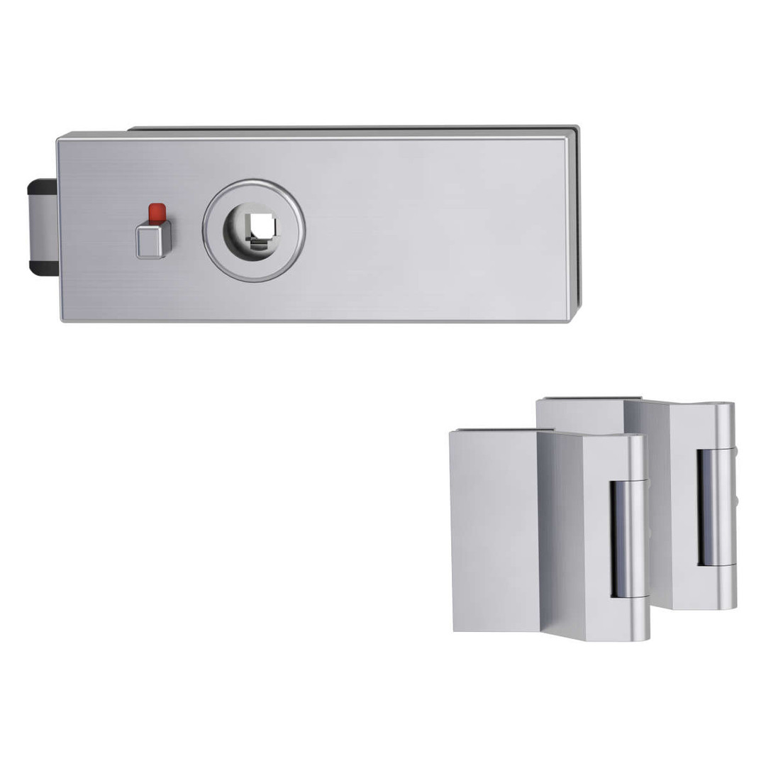 Griffwerk Glastürbeschlagset PURISTO S - smart2lock Flüster 3-tlg. Bänder - Edelstahl matt ohne Griff