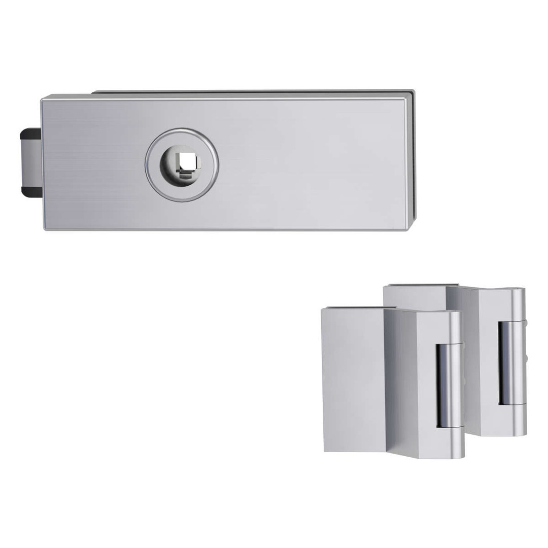 Griffwerk Glastürbeschlagset PURISTO S - unverschließbar Flüster 3-tlg. Bänder - Edelstahl matt ohne Griff