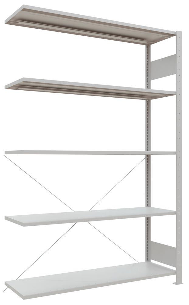 Großfach-Steckregal, Anbaufeld, RAL 7035 lichtgrau, Fachlast 250 kg, 5 Fachböden, BxTxH 1300x400x2000 mm