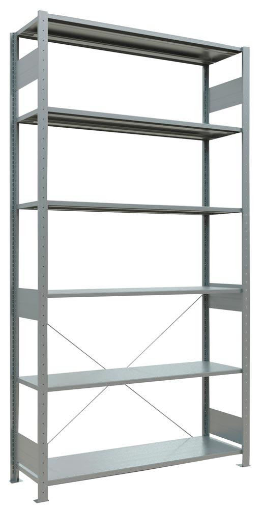 Großfach-Steckregal, Grundfeld, RAL 7035 lichtgrau, Fachlast 250 kg, 6 Fachböden, BxTxH 1300x400x2500 mm