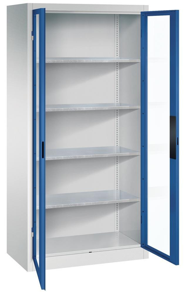 Großraum-Werkzeugschrank mit Sichtfenstertüren, 4 Verstellböden, BxTxH 930x500x1950 mm, RAL 7035/5010