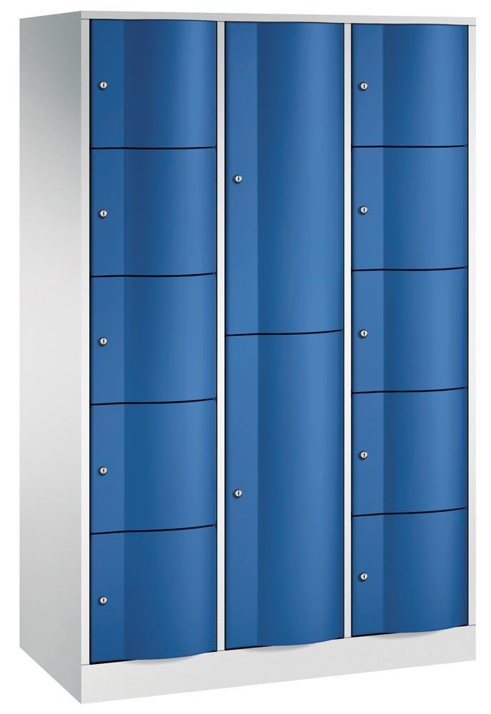 Großraum-Wertfachschrank mit Spezialtüren, 12 Abteile, BxTxH 1150x540x1950 mm, RAL 7035/5010