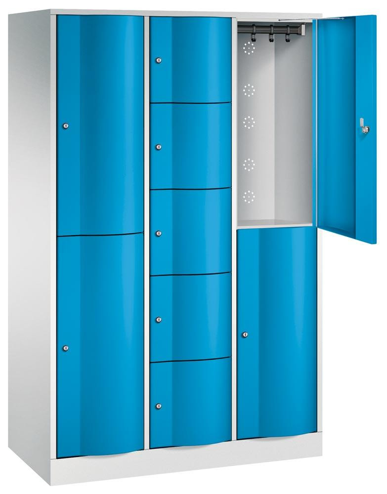 Großraum-Wertfachschrank mit Spezialtüren, 9 Abteile, BxTxH 1150x540x1950 mm, RAL 7035/5012