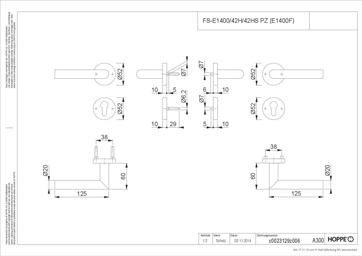 - Lagerung: Türgriffe fest/drehbar, Rückholfedern, HOPPE-Steckgriff-Verbindung mit Kugel-Arretierung Sertos ® , wartungsfreie Gleitlager