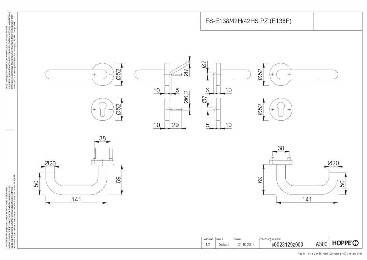 HOPPE Feuerschutz-Türgriff-Garnitur Paris - FS-E138/42H/42HS, F69 Edelstahl