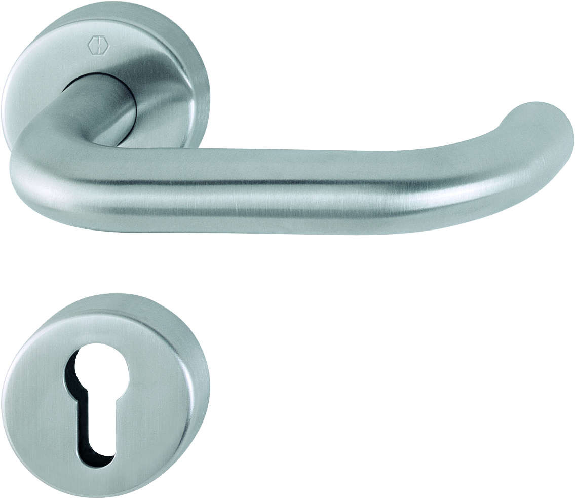 HOPPE-Edelstahl-Rosetten-Türgriff-Garnitur mit Schlüsselrosetten für Innentüren: •