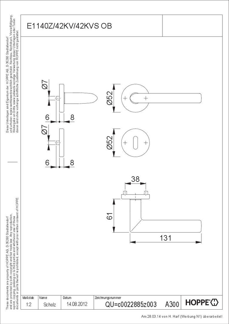 - Verbindung: • HOPPE-Schnellstift • mit HOPPE-Vollstift (Stift-/Lochteil) •