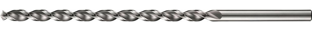 Extra langer Bohrer PFX Bohrer mit Zylinderschaft · Durchmesser 1.5mm mit einer Gesamtlänge von 115mm und einer Schneidenlänge von 75mm gemäß DIN 1869 / 1 Standard mit 130° Spitzenwinkel · Kobalt basiertes HSS-E mit blank · hochspiralisiert und parabolischem Kern für 15xD Bohrungen ohne Zentrierung in Stahl · Vorteile: