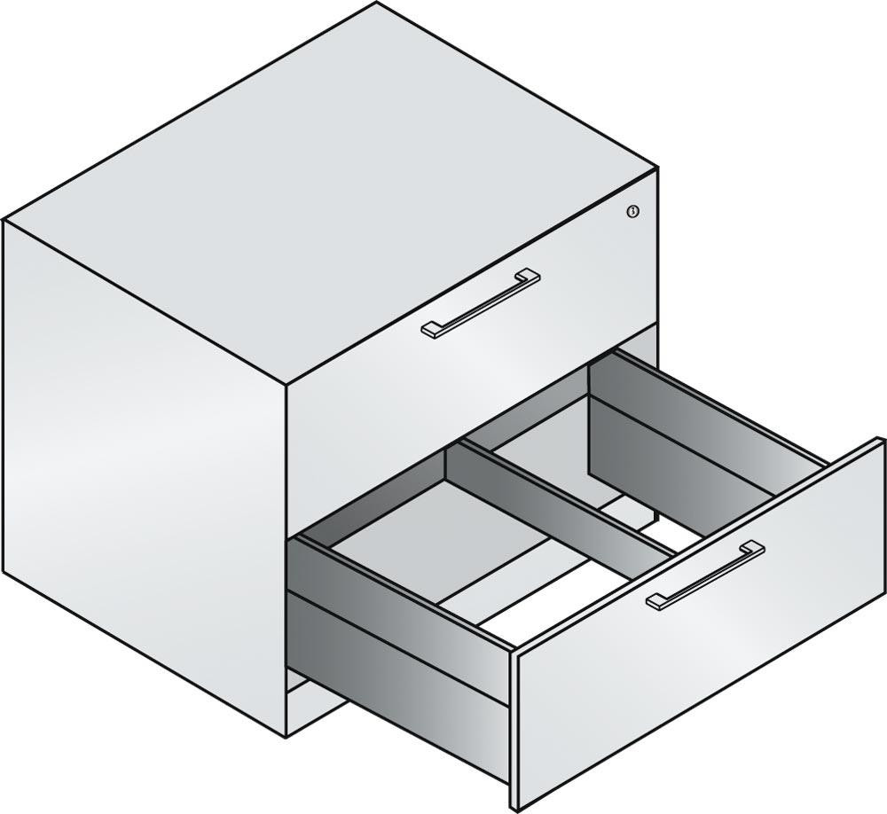 · Langlebige, körperschallgedämpfte Stahlkonstruktion mit hochwertiger Einbrennlackierung ∙ Schubladen auf 100 % ausziehbaren Kugelrollen-Teleskopführungen ∙ Schubladenfronten mit matt-verchromtem Bügelgriff ∙ Zentralverschluss mit Auszugsperre ∙ Austauschbarer Wechselkern, inkl. 2 Schlüsseln ∙ Inkl. selbstklebenden Kunststoff-Etikettenrahmen