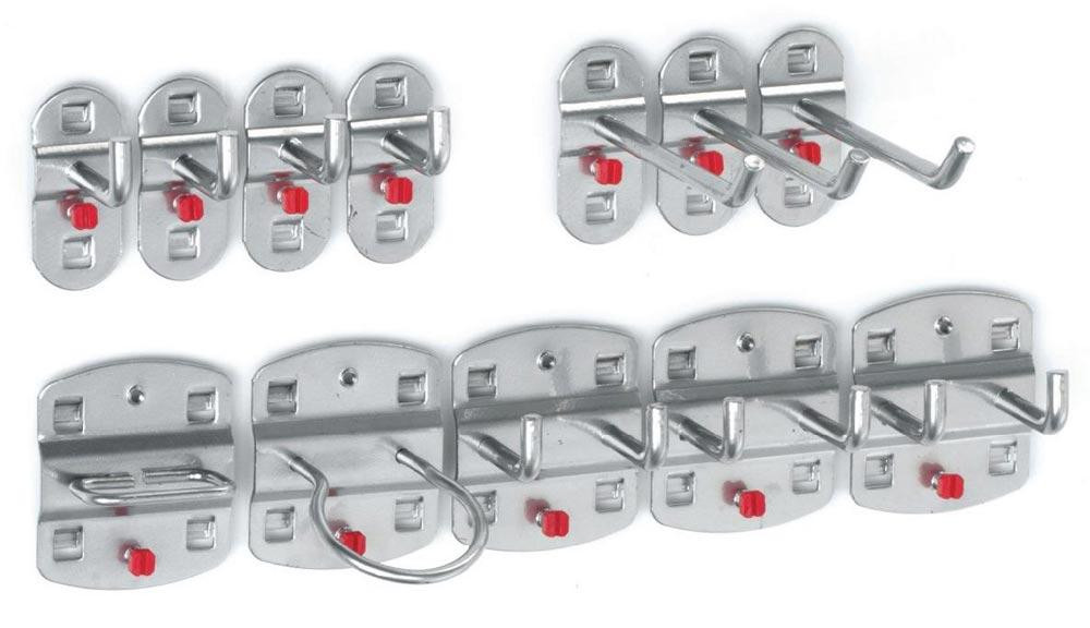 12-teilig Lieferumfang: 4 Werkzeughalter mit senkrechtem Ende, 3 doppelte Werkzeughalter, 1 Zangenhalter, 1 Maschinenhalter, 3 Werkzeughalter mit schrägem Ende