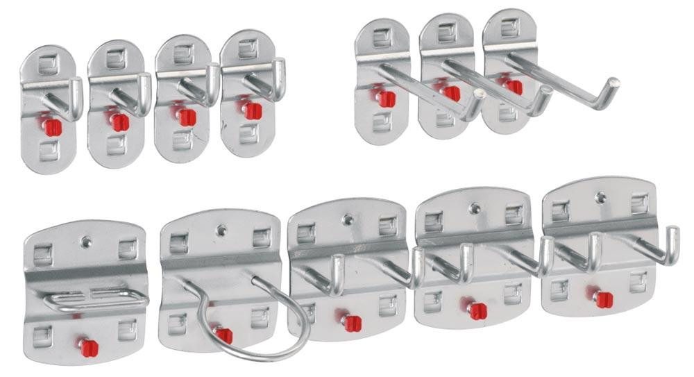 Der richtige Haken für jedes Werkzeug schafft Übersicht und Ordnung am Arbeitsplatz. Alles sofort griffbereit und einsatzfähig. Einfach in die Lochung einhängen und mit der Original RasterPlan-Schraube fixieren
