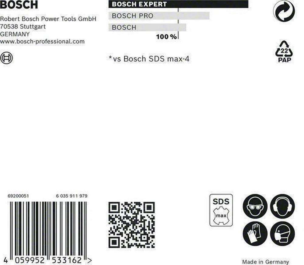 Bosch Carbide-Technologie für langlebiges Bohren von Stahlbeton · dringt effektiv durch die Armierung, sodass man nicht stoppen, neu zielen oder den Bohrer wechseln muss, wenn man auf Stahl stößt · passend für SDS max Bohrhämmer