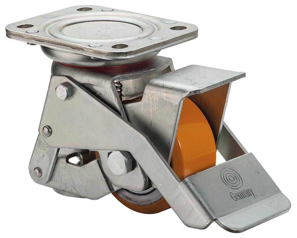 Hebe-Lenkrolle, Polyurethan, Durchm. 75 mm, Nivellierhöhe 112-125 mm, Traglast 350 kg, Kugellager, Schraubplatte