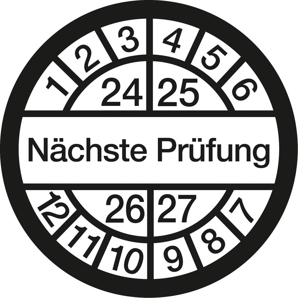 Hinweisschild, nächste Prüfung 2024, PVC-Folie, weiß, Durchm. 16 mm, VE 10 Stück, Mindestabnahme 10 VE