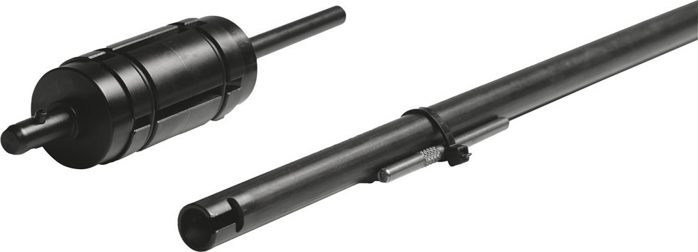 der Anschlag wird von hinten in die Hohlspindel eingesetzt und mit einem Spezialschlüssel angezogen · durch das Anziehen der Spannschraube werden die Spannbacken an die Innenwand der Hohlspindel gedrückt, dadurch ist ein sicherer Sitz des Anschlages gewährleistet · mit dem Schlüssel wird der Anschlag gelöst und in der Länge verschoben