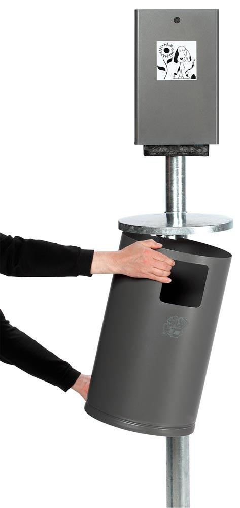Hundetoilette, Tütenspender inkl. Abfallsammler u. Standrohr, BxTxH 350x480x2000 mm, verzinkt u. lackiert DB703, Verschließbar