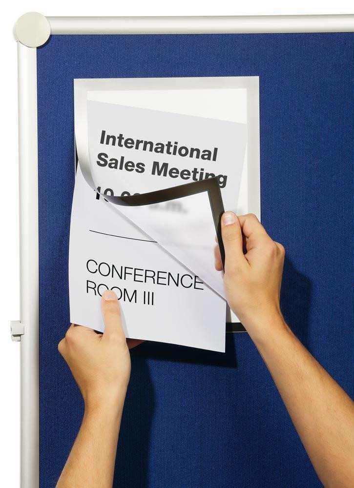 · Schnelles Anbringen durch rückseitige Klettstreifen · Für den Einsatz z. B. an Textiltafeln und Akustikpaneelen · Aufklappbare magnetische Vorderseite