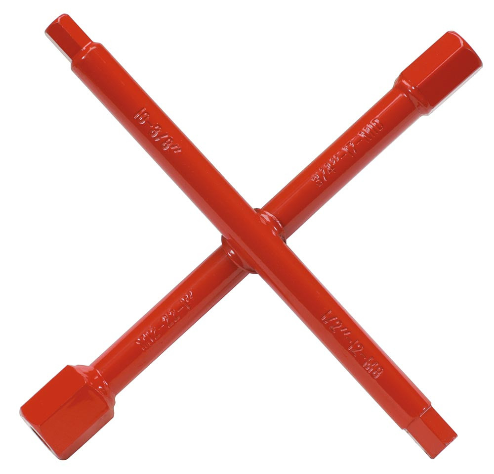 • Aus Vergütungsstahl, pulverlackiert • Kombi-Kreuzschlüssel mit Auflaufspitzen, leicht lösend
