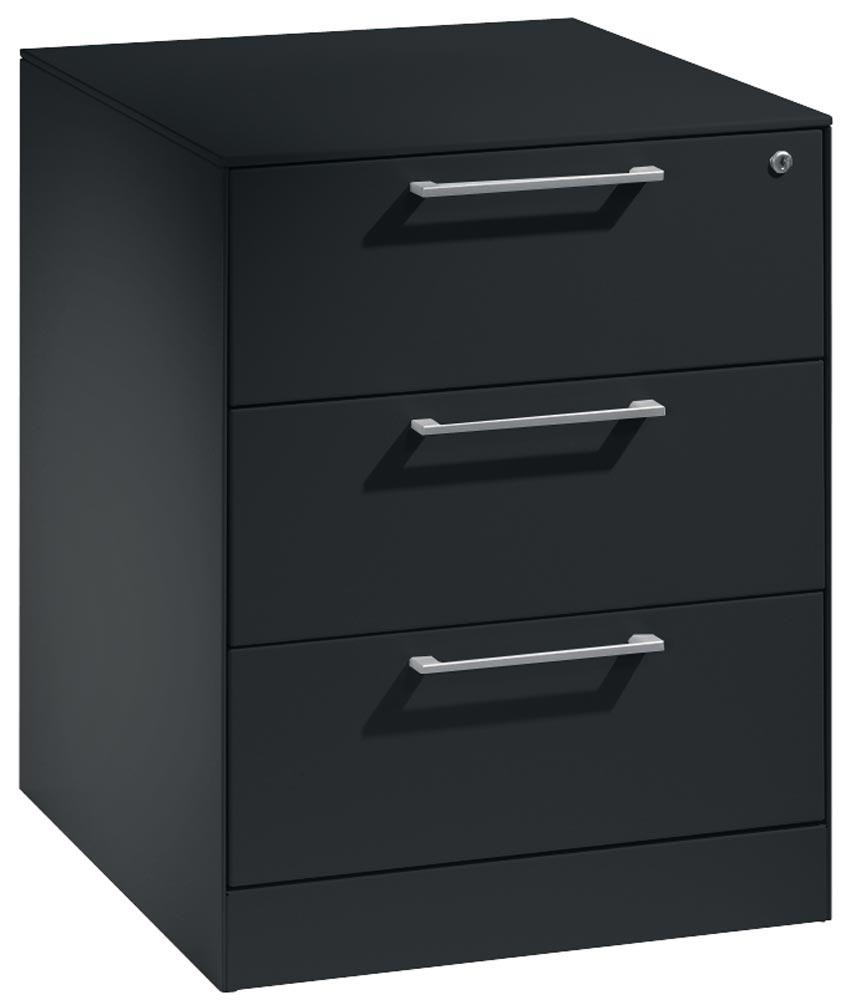 Karteischrank, BxTxH 562x600x698 mm, DIN A5, zweibahnig, 3 Schubladen, Bügelgriff, RAL 7021 schwarzgrau
