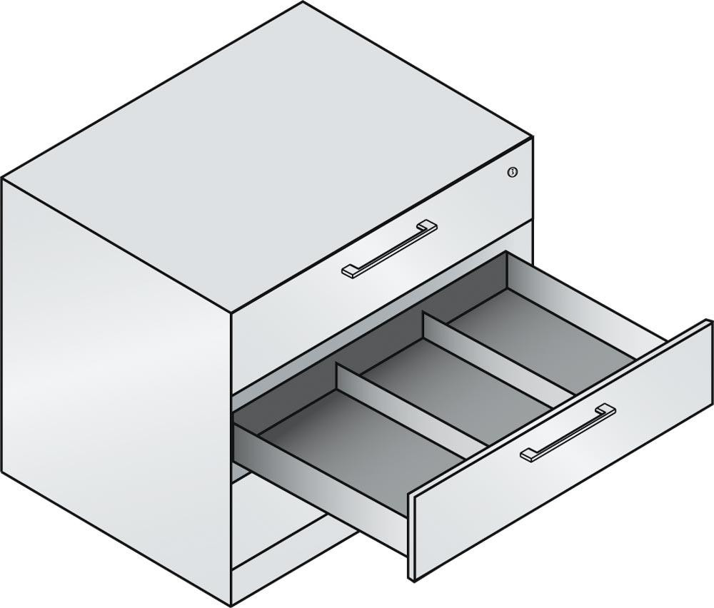 ∙ Robuste und langlebige Stahlkonstruktion mit hochwertiger Einbrennlackierung ∙ Schubladen auf 100 % ausziehbaren Kugelrollen-Teleskopführungen ∙ Schubladenfronten mit matt-verchromtem Bügelgriff ∙ Zentralverschluss mit Auszugsperre ∙ Austauschbarer Wechselkern, inkl. 2 Schlüsseln ∙ Inkl. selbstklebenden Kunststoff-Etikettenrahmen