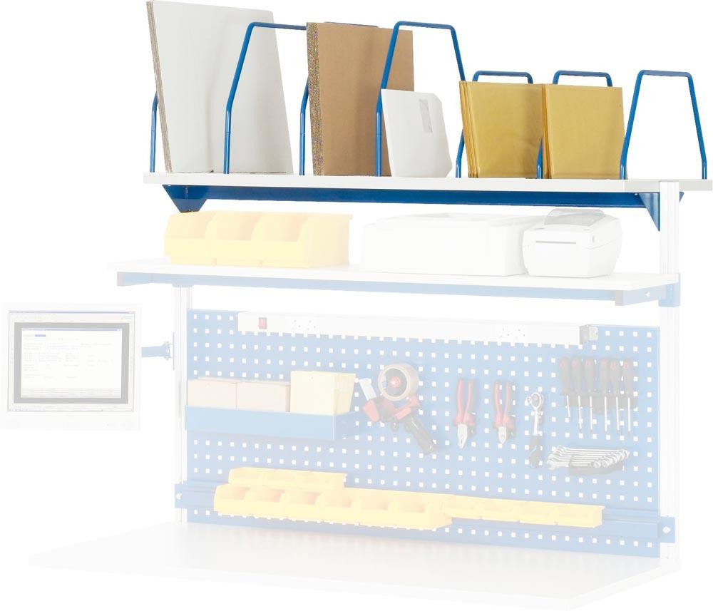· Tiefe 600 mm · Melaminharzbeschichtete Platte · Variable Positionierung der Steckbügel mittels Systembolzen · Steckbügel Tiefe 550 mm · Höhe 300 mm bzw. 500 mm · Belastbarkeit max. 30 kg